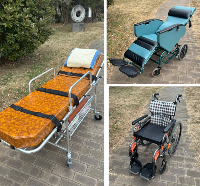 車椅子,リクライニング車椅子,ストレッチャー,女性介助 |